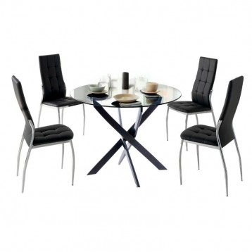 Los conjuntos cuadrados como los que encuentras en Miroytengo.es, son perfectos para comedores de tamaño medio o espacios compactos. Este diseño geométrico aporta una sensación de orden y simetría al ambiente que siempre se va a apreciar a primeras.