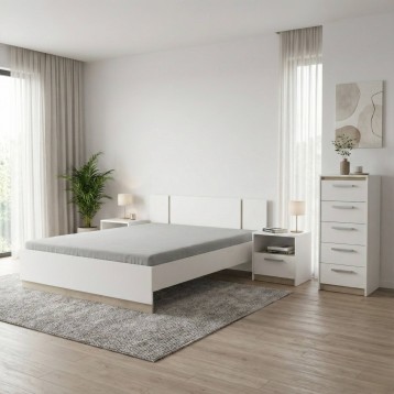 Pack de Muebles de Dormitorio en Blanco Albo y Roble Rayado