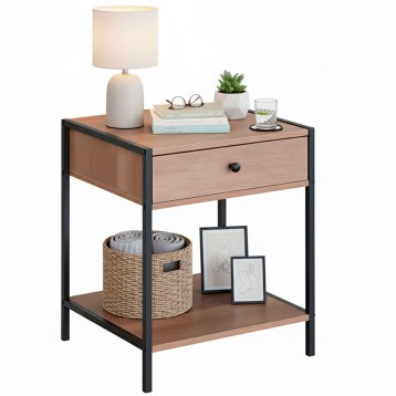 Mesita de Noche 1 Cajón Sticky Color Roble Cambrian y Negro 40x50 cm
