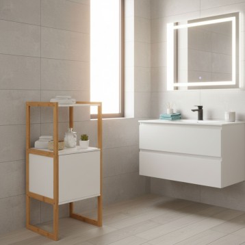 Atención personalizadaOptimiza tu espacio de baño con el mueble auxiliar Natureo, una solución diseñada para maximizar el almacenamiento y la organización en áreas reducidas. Este mueble bajo para baño está fabricado en melamina resistente a la humedad, ideal para entornos húmedos. Presenta un acabado en color blanco combinado con un marco de bambú liso, ofreciendo un look nórdico y atemporal que complementa cualquier decoración. El mueble Natureo cuenta con 1 puerta que permite el acceso a un interior espacioso, ideal para almacenar productos de higiene o toallas, mientras que el estante abierto en la parte superior proporciona un espacio adicional perfecto para artículos de uso frecuente. La puerta, sin tiradores sobresalientes, mantiene el diseño limpio y moderno. Este mueble se adapta a la perfección a diferentes estilos decorativos, desde lo minimalista hasta lo contemporáneo. Descubre cómo el mueble auxiliar de baño Natureo puede transformar tu baño en un espacio organizado y visualmente amplio. Añádelo a tu carrito y disfruta de sus múltiples beneficios.