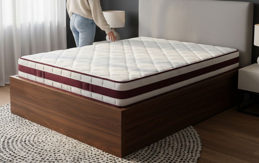 Los colchones de muelles ensacados o látex natural favorecen la ventilación. Si tiendes a sudar por la noche, evita materiales demasiado densos sin canales de aireación.