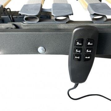 - Motor doble de 4500 Newton, de última generación (independiente cabecero-piecero, o los 2 a la vez), silencioso, con pila de emergencia para el retorno a cero (posición de reposo), en caso de corte de energía eléctrica. Motorización accionable por mando con cable.
