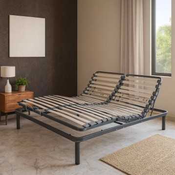 Cama articulada eléctrica metálica con 5 planos independientes para que su descanso cuente con el máximo reposo de todas las partes de su cuerpo. Incorpora los últimos avances en materia de ergonomía y biomecánica aplicados al mundo del descanso. Funciona con un mando y motores silenciosos homologados según normativa.