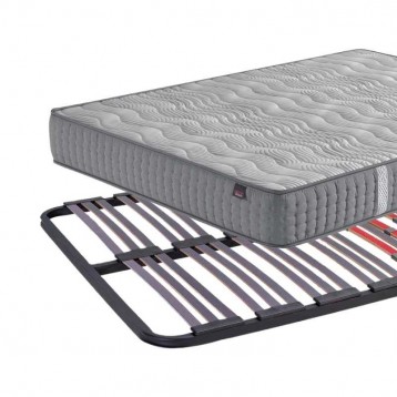 Atención personalizadaFantástico pack de descanso compuesto por un somier multiláminas y un colchón Berlín, perfecto para completar una cama individual o de matrimonio, ya que dispondrás de los componentes indispensables para mejorar tu descanso. El somier está formado por baldas de madera de haya pintadas con papel antideslizante y espigadas en PVC, tubo de 40x30 mm y refuerzo lumbar (en las medidas de matrimonio). Por otra parte, el colchón Berlín dispone de un núcleo de muelles ensacados independientes con refuerzo perimetral extra firm cubierto por capas de goma soft y viscoelástica (proporcionando una buena adaptabilidad gracias a sus cinco zonas de descanso). Además, es antiácaros, antibacteriano e hipoalergénico, tiene tejido strech suave y una firmeza media - alta. ¡Mejora tus horas de sueño con el pack ahorro Golden 2!. Encuentra todas nuestras camas completas aquí, tenemos una gran variedad de packs de colchones a precios increíbles.