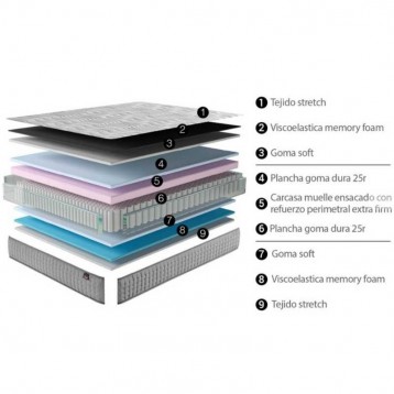 - Núcleo de carcasa de muelles ensacados independientes con 5 zonas de descanso.