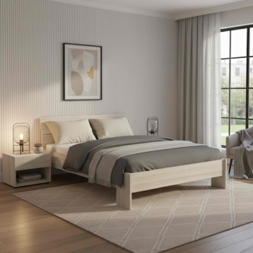 Atención personalizadaMaravillosa Cama Prins ideal para tu habitación de matrimonio en color roble shannon, la cual te aportará armonía gracias a su tono suave y natural. Con su estilo moderno y su color neutro, podrás combinarlo perfectamente con cualquier mobiliario de tu habitación. Lleva un cabecero integrado que realiza una ligera inclinación creando un efecto diferente al de las camas convencionales. La cama Prins es compatible con somieres de 140x190 cm o de 135x190 cm. Si utilizas la medida de 135x190 quedará un pequeño hueco al lado de la estructura de la cama. Por otro lado, admite colchones de 135x190, 135x200, 140x190 o 140x200 cm. Además, a la hora de su montaje, podrás modificar la profundidad de la cama, pasando 190 cm a 200 cm. ¡La cama Prins pondrá a la última tu dormitorio! Encuentra las mejores camas de matrimonio aquí.