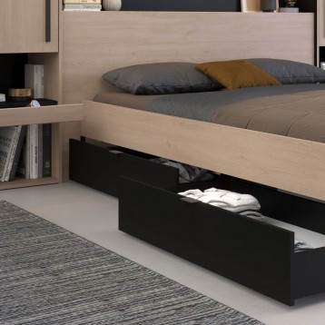 Atención personalizada¡Cambia tu vieja cama de matrimonio! Este conjunto de cama y cajones bajos John es la solución a tus problemas. Gracias a su diseño, su capacidad de almacenaje y su estilo, ganarás siempre. Su cama tiene un pequeño cabecero en color roble brooklyn y es compatible para somieres y colchones (no incluidos) de 135-140x190 cm. Cuenta con 2 cajones inferiores en cada lado de la cama, en color negro stipple, te ayudarán a recoger, guardar y colocar todo lo que no quieres dejar a la vista. Consigue un ambiente industrial con esta cama doble con 4 cajones inferiores.