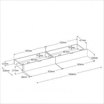 Medidas totales: Alto 21.7 cm Ancho 185.8 cm Profundo 50.8 cm
