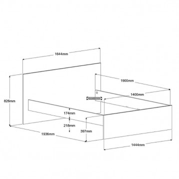 Medidas cama: Alto 39.7 cm Ancho 140 cm Profundo 190 cm