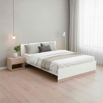 Atención personalizada¿Conoces la cama de matrimonio Watson?. Compatible con somieres de 135 o 140x190 cm, es ideal para dos personas. Sus dimensiones precisas garantizan un ajuste perfecto y un uso cómodo en tu espacio personal. Fabricada con melamina con un acabado en blanco con detalles en roble Kronberg, añade un toque contemporáneo que realzara tu decoración. La cama Watson es una excelente elección para aquellos que buscan un cambio de aires en su dormitorio. Su diseño adaptable a diferentes estilos la convierten en la pieza perfecta para refrescar tu dormitorio, mientras que su montaje sencillo te hacen perder la menor cantidad de tiempo en su montaje. ¡Aprovecha la oportunidad de transformar tu dormitorio con la cama Watson, combinando confort, comodidad y estilo en un solo mueble!