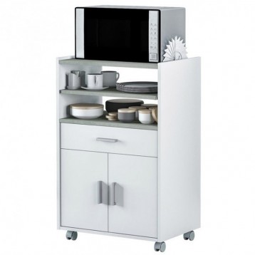 Atención personalizadaMuebles de cocina en color blanco y gris efecto cemento, dos colores que facilitan un ambiente moderno y de estilo industrial. Muebles auxiliares estupendos para completar la cocina o algún espacio auxiliar que tengas en tu hogar. Desde luego con este conjunto de mobiliario, la funcionalidad está asegurada. Si escoges este conjunto de muebles para tu cocina, tendrás espacio para despensa, poner el microondas y la cafetera, desayunar...Pero también comer y cenar, porque la mesa es desplegable. Aprovecha al máximo el espacio y úsala cuando te haga falta. Mobiliario de fabricación nacional, acabado en melamina de alta calidad. En este pack se incluye: mesa, buffe con ruedas, armario suspendido (para colgar en la pared), armario bajo y armario alto. ¡Increíble!