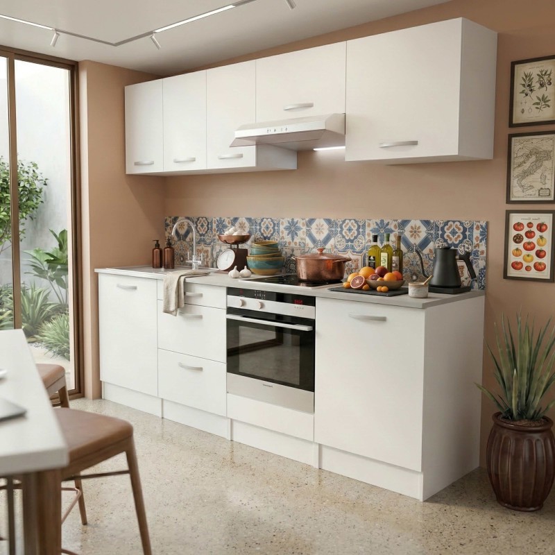 NOTA: No incluyen otros muebles, electrodomésticos, ni elementos decorativos. La disposición de los módulos es libre al tratarse de módulos sueltos. Aunque es recomendable seguir algunas prácticas habituales, como colocar el fregadero en los módulos sin cajones. Las imágenes son orientativas.