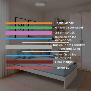 Atención personalizada¿Necesitas colchones para una cama nido? Te ponemos las cosas fáciles con este pack ahorro descanso, es irresistible. Los colchones Miroytengo Juvenil destacan por su núcleo de Foamflex, HR de mayor calidad que otros colchones que supone una mayor durabilidad en el tiempo. Además, el viscogel presente en estos colchones ofrecen una mayor sensación de confort que se percibe al acostarse y también tiene un efecto positivo en la regulación de la temperatura.