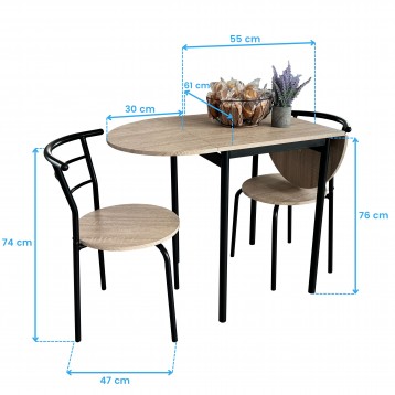 Atención personalizada¿Buscas un conjunto de cocina funcional y con mucho estilo? Nuestro pack Butterfly con mesa abatible y 2 sillas es la elección perfecta para transformar tu hogar sin complicaciones. Su diseño contemporáneo combina la elegancia del negro con la calidez del roble, creando un ambiente acogedor y con personalidad propia. La estructura metálica garantiza resistencia y durabilidad, mientras que las superficies en melamina de alta calidad son fáciles de limpiar y mantener. La mesa abatible es ideal para adaptarse a tus rutinas: despliega solo lo que necesitas, y gana espacio sin renunciar a la comodidad. ¿Una cena en pareja? ¿Un rincón de trabajo? ¿Un desayuno con calma? ¡Todo es posible con este conjunto! Las sillas, con un diseño ergonómico y moderno, lo completan ofreciendo confort y armonía visual, para que cada uso sea una experiencia agradable.