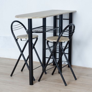 Atención personalizadaDescubre la mesa de cocina con conjunto de 2 taburetes plegables que se convierten en la pieza ideal para optimizar espacios y aportar estilo a tu hogar. Esta mesa, de acabado en negro combinado con madera clara, refleja un diseño moderno y minimalista, perfecto para cualquier cocina industrial. Fabricada en melamina y metal, esta mesa promete una estructura que facilitará su integración en distintos ambientes, siendo especialmente recomendable para cocinas u oficinas que buscan un toque actual y práctico. Los taburetes plegables son un añadido práctico que permite un uso eficiente del espacio, permitiendo almacenarlos fácilmente cuando no se requieren. Este set es versátil, adaptándose tanto a comidas casuales como a momentos de trabajo. Sus líneas limpias y su diseño sencillo hacen que sea una opción ideal para aquellos que valoran una estética cuidada sin complicaciones. Su diseño moderno y funcional convierte a este conjunto en una elección acertada para aquellos que buscan un mobiliario que combine estilo y practicidad. Gracias a su versatilidad, podrás disfrutar de este conjunto en diversos espacios de tu hogar, ya sea en la cocina, el comedor o la oficina. Es el complemento perfecto para quienes aprecian una decoración que integra diseño y utilidad.