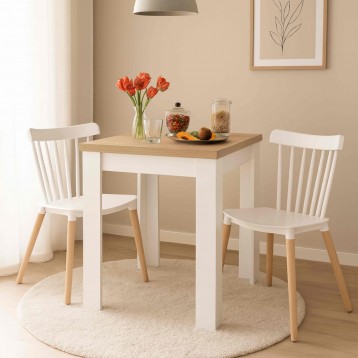 Atención personalizada¿Tienes una cocina pequeña y quieres aprovechar cada rincón con estilo? Este conjunto de mesa extensible y 2 sillas es la solución ideal para cocinas que necesitan funcionalidad sin perder diseño. Incluye: