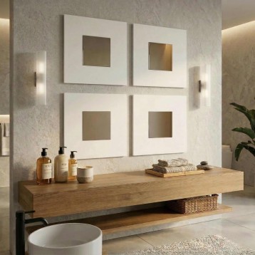 Atención personalizada¿Tienes una habitación oscura o un salón que parece pequeño? El set de 4 espejos Lupe es la herramienta secreta de los decoradores para "abrir" espacios. Su diseño limpio en color blanco y su formato modular te permiten diseñar un mural de reflejos totalmente personalizado. El acabado en blanco puro captura la luz natural y la proyecta por toda la estancia, eliminando rincones sombríos. Colócalos juntos para crear un gran espejo simétrico o distribúyelos por la casa para unificar el estilo de tu decoración. Sus líneas rectas y marco sutil encajan perfectamente en ambientes nórdicos, modernos o incluso minimalistas.