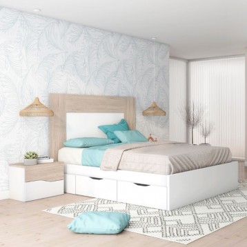 Además, tienes la opción de completar este pack añadiendo la cama Lyon (150x190 cm) con cuatro cajones, proporcionando un almacenamiento adicional y optimizando el espacio disponible en tu habitación. Esta cama es perfecta para aquellos que buscan una solución práctica y estilizada para guardar ropa de cama, zapatos y otros objetos personales. Gracias a este pack, podrás renovar o amueblar desde cero tu habitación de matrimonio con todos los muebles que lo componen, creando un ambiente armonioso y bien coordinado. ¡Amuebla tu habitación con el estilo que siempre has querido con este magnifico pack!. Encuentra aquí todos nuestros dormitorios de estilo nórdico y todos nuestros dormitorios de matrimonio completos aquí.