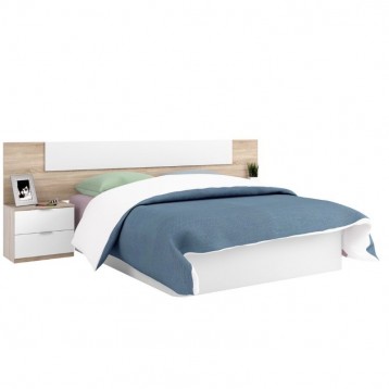 Este conjunto de muebles modernos está fabricado en melamina de alta calidad en España y combina el color roble Canadian con el blanco artik (mate), creando un ambiente elegante y acogedor en tu dormitorio. Disfruta de la combinación perfecta de estilo y funcionalidad con este pack de dormitorio completo. Encuentra aquí todos nuestros dormitorios de estilo nórdico y todos nuestros dormitorios de matrimonio completos aquí.