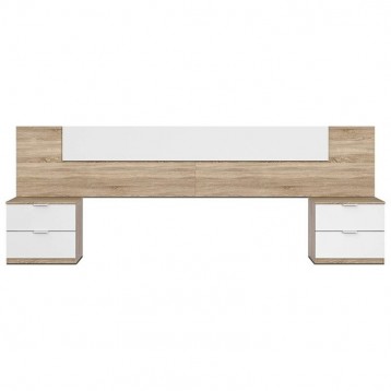 Conjunto cabezal + mesitas: Alto 95 cm Ancho 247 cm Profundo 38 cm.