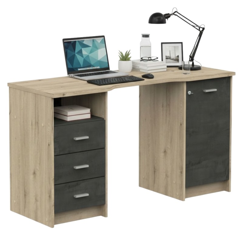 Atención personalizadaDescubre el escritorio Mónaco, una mesa ideal para maximizar tu espacio de trabajo con estilo. Este escritorio ha sido diseñado con una combinación de acabados en roble artisan y sidewalk, proporcionando un toque moderno y fresco a cualquier oficina en casa o espacio de estudio. Cuenta con tres cajones amplios, perfectos para organizar tus suministros y documentos importantes, además de una puerta con cerradura y un estante interior adicional que ofrecen más opciones de almacenamiento. El hueco integrado es ideal para colocar tu ordenador o libros que necesitas tener a mano. Fabricado con melamina, este mueble combina practicidad y diseño en un solo mueble. Dale a tu área de trabajo la actualización que necesita con esta mesa escritorio versátil y de diseño cuidado. ¡Añade al carrito y disfruta de tus proyectos!