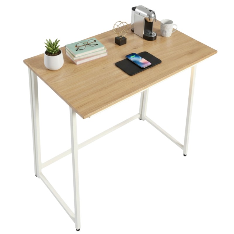 Atención personalizadaOptimiza tu espacio de trabajo con la mesa escritorio plegable modelo Utility. Este mueble destaca por su diseño moderno en blanco mate y roble cambrian, ideal para cualquier entorno gracias a su ligereza y solidez. Su estructura de metal proporciona gran estabilidad, siendo perfecta para habitaciones pequeñas, oficinas, estudios o pisos donde el espacio es un bien preciado. El tamaño compacto de la mesa, de 50 x 80 cm, la convierte en una opción práctica para usar como escritorio de ordenador, mesa de estudio o mesa auxiliar. La funcionalidad de este escritorio es inmejorable, ya que se pliega fácilmente, facilitando su almacenamiento y transporte cuando no está en uso. Fabricada en melamina y metal, esta mesa combina estética y practicidad, ofreciendo un mueble versátil para tu día a día. Mejora tu entorno con esta solución eficiente que cumple con tus necesidades y proporciona un espacio de trabajo cómodo. Añádela a tu hogar y disfruta de su diseño y utilidad.