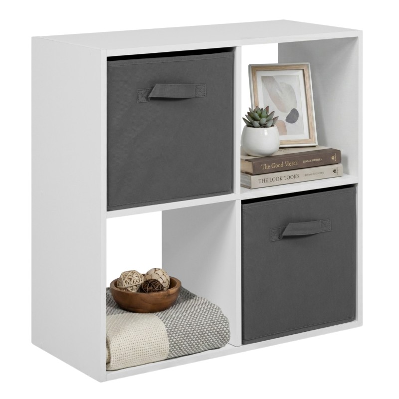Estantería Baja Abril Cuadrada Blanco Mate y Gris 60x60x28 cm
