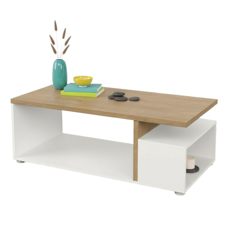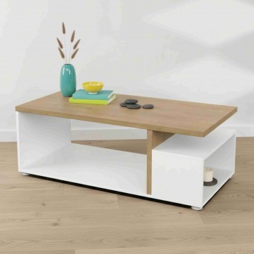 Atención personalizadaAnima tu salón con la encantadora mesa de centro fija Acces, donde el clásico roble hamilton se entrelaza con el moderno blanco mate para crear un espacio acogedor y lleno de vida. Un mueble de salón fabricado en melamina de alta calidad. Dispone de 3 huecos funcionales para mantener el orden y la elegancia; perfectos para tus revistas, mandos a distancia y añadir decoración con tus plantas favoritas. En su amplia superficie nacen las tardes de juegos, las charlas café en mano y esos aperitivos improvisados al recibir a la família o amigos cobran un nuevo encanto. Resistente, chic y tremendamente versátil, es el nuevo punto de encuentro para estar relajado y entablar muchas conversaciones. La pieza central que tu comedor estaba esperando. ¡Prepárate para hacer de cada momento junto a ella, una ocasión especial!