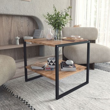 Atención personalizadaDescubre la mesa de centro fija modelo Rus. Esta pieza combina una superficie en un tono roble safir que captura la mirada, complementada por una estructura en color negro. La elección de Melamina para la cubierta y metal para la estructura aporta un toque sobrio y moderno. Además, cuenta con una base inferior, perfecto para organizar tus revistas, mandos y demás esenciales del salón. La mesa Rus se integra armoniosamente en cualquier decoración, aportando un centro de atención único en tu salón. Ideal para aquellos que valoran la estética y la practicidad, este mueble transformará tu espacio. Dale a tu comedor un toque de innovación y distinción con esta mesa de centro que invita a reunirse y compartir momentos memorables. ¡Consigue ya tu mesa de centro Rus haciendo click en el carrito!