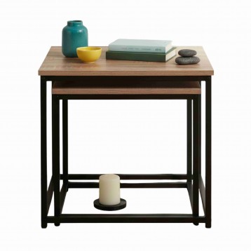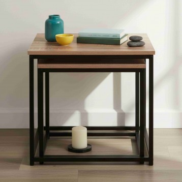 Atención personalizada¿Sabes cómo transformar tu salón? Con el juego de 2 mesas centro nido Aliaj, todo es posible. Diseñadas en un encantador contraste entre negro y roble claro, estas mesas ofrecen una opción decorativa perfecta para cualquier tipo de entorno. Su estructura fabricada en acero brinda un toque moderno y actual, adaptándose a diferentes estilos de decoración, desde los más minimalistas hasta los más eclécticos. Estas mesas nido se destacan por su versatilidad, permitiéndote utilizarlas juntas o por separado según tus necesidades. Ya sea para colocar tus bebidas, libros favoritos o elementos decorativos, encontrarán su lugar en tu hogar fácilmente. Además, su diseño compacto las hace ideales para espacios reducidos, maximizando el uso del área disponible sin comprometer el estilo. El modelo Aliaj no solo aporta estética a tu salón sino también funcionalidad. Con estas mesas, añadirás un acento industrial y acogedor a tu comedor, complementando tu mobiliario existente de manera sutil y elegante.