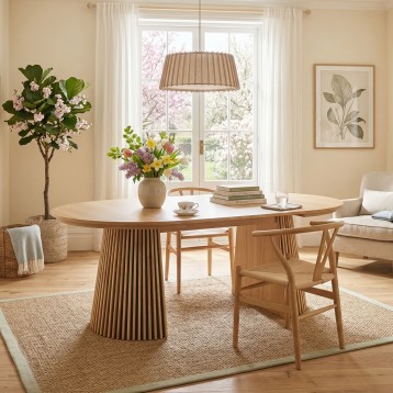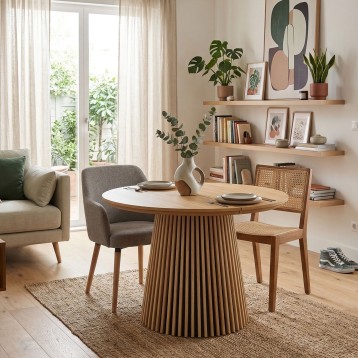 Atención personalizadaTransforma tu comedor con la mesa redonda extensible Árbol en elegante color roble claro. Su diseño innovador, con patas de cono en palillería, le da un toque moderno a cualquier espacio. Con su sistema extensible, podrás ajustar el tamaño de la mesa fácilmente, pasando de 120 cm a 160 cm o hasta 200 cm, para adaptarse a tus necesidades. La tapa y los extensibles están fabricados en melamina con papel laminado, para proporcionar durabilidad y un mantenimiento sencillo. Esta mesa de salón es perfecta para aquellos que buscan estilo y funcionalidad en un solo mueble. Descubre esas ganas de ajustarla para comer en "petit comité" como para invitar a muchos amigos. ¡Haz de tu comedor el lugar ideal para compartir momentos especiales!