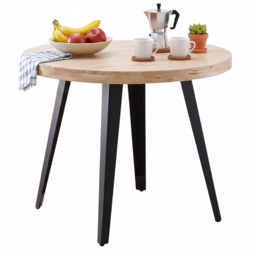 Atención personalizadaIdeal mesa de comedor redonda para salones con poco espacio pero arriesgados. Una mesa fija fabricada en madera de roble pulida nordish con patas de metal en color negro (acabado epoxi mate). Esta mesa Berg posee el estilo industrial que todo hogar moderno necesita. Por eso, si buscabas una mesa estilosa, que marcará tu personalidad, este modelo tiene el carácter que estabas buscando.