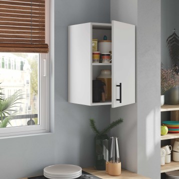 Atención personalizadaDescubre el módulo de cocina alto Kira en blanco brillo de 40 cm, la solución perfecta para optimizar el espacio en tu cocina. Este mueble de cocina colgante está diseñado para maximizar el almacenamiento con estilo. Fabricado en melamina, destaca por su acabado en blanco brillo que aporta luz y amplitud a cualquier ambiente. Con 1 puerta reversible que se adapta a tus necesidades de montaje, este módulo se convierte en una opción versátil y práctica para cualquier cocina actual. En su interior, encontrarás un estante que permite organizar tus utensilios o alimentos sin complicaciones, simplificando el orden en tu hogar. El tirador metálico en color negro no solo ofrece una sujeción cómoda, sino que también agrega un contraste moderno y elegante al diseño. El estante es fijo, su disposición está diseñada para ofrecer un espacio útil y eficiente para todo tipo de almacenamiento. Añádelo al carrito y comienza a disfrutar de una cocina moderna y organizada.
