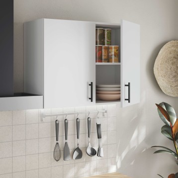 Atención personalizadaIntroduce un toque moderno y práctico en tu cocina con el módulo de cocina superior Kira de 80 cm en blanco brillo. Este armario de pared es ideal para maximizar el espacio en tu cocina, gracias a sus 2 puertas abatibles, que revelan un estante interior fijo perfecto para organizar tus utensilios de cocina, especias o productos no perecederos. La superficie en blanco brillo proporciona un acabado limpio y contemporáneo, que complementará cualquier decoración. Los tiradores metálicos pintados en negro no solo facilitan la apertura diaria, sino que también añaden un toque de contraste elegante al diseño global del mueble. Fabricado en melamina, un material conocido por su conveniente mantenimiento, este módulo es una elección inteligente para quienes buscan estilo y practicidad. La línea Kira no solo se adapta a tus necesidades de almacenamiento, sino que también se integra fácilmente en cualquier estilo de decoración, brindando una sensación de orden y modernidad a la estancia. Añádelo al carrito y empieza a disfrutar de una cocina más organizada.