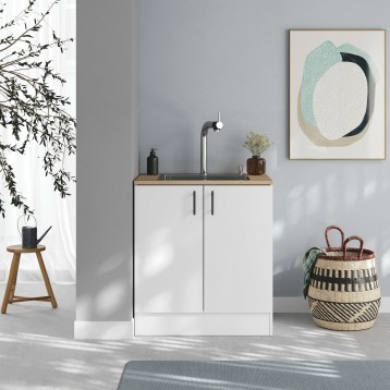 Atención personalizadaOptimiza tu cocina con el moderno mueble bajo fregadero Kira. Diseñado para aquellos que aprecian tanto la estética como la eficiencia, este módulo de cocina con 2 puertas en blanco brillo y roble canadian te ofrece el espacio necesario para mantener el orden en tu hogar. Sus tiradores metálicos pintados en negro añaden un toque contemporáneo que complementa cualquier decoración. La encimera de color roble canadian no solo añade calidez al diseño, sino que también te permite personalizarla a la medida adecuada para tu fregadero. Es importante mencionar que las herramientas necesarias y la preparación para realizar el orificio adecuado deben ser realizadas por un profesional. Aunque este módulo no incluye el fregadero, su diseño permite ajustarse a las necesidades específicas de cada usuario. Fabricado en melamina, material conocido por su fácil mantenimiento, el mueble bajo fregadero Kira se convertirá en el aliado perfecto para tu cocina. Con sus dimensiones de 80 cm, ofrece una excelente relación calidad-precio que no puedes dejar pasar. ¿Listo para transformar tu cocina? Añade este módulo Kira a tu carrito y descubre su funcionalidad.