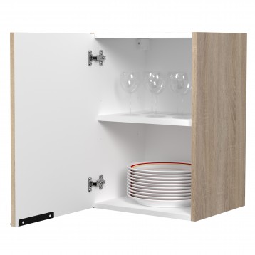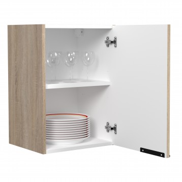 Atención personalizadaDescubre el módulo de cocina superior Arko, una solución práctica para optimizar el almacenamiento en tu cocina. Con sus dimensiones de 40x36 cm, este mueble de cocina es perfecto para aprovechar el espacio al máximo. Cuenta con 1 puerta que, al abrirse, revela un estante ideal para organizar utensilios, vajillas o ingredientes. El diseño del módulo Arko combina la calidez del roble áspero con un elegante detalle en negro, aportando un atractivo contraste que complementa diversos estilos de cocina. El tirador de aluminio lacado en negro no solo proporciona un toque contemporáneo, sino que también asegura un agarre cómodo y seguro al abrir la puerta. Fabricado en melamina, este módulo es una opción asequible y efectiva para quienes desean renovar su cocina sin sacrificar estilo. La combinación de madera clara y negro permite que este mueble se adapte fácilmente a diferentes paletas de colores. ¡Añade este práctico mueble a tu carrito!