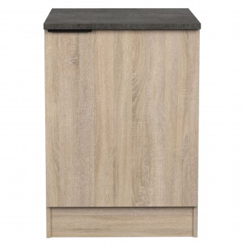 Atención personalizadaOptimiza tu espacio de cocina con el módulo inferior Arko de 1 puerta, un mueble que ofrece las soluciones de almacenamiento que necesitas en tu hogar. Con unas dimensiones de 60x60 cm, este módulo es ideal para cocinas compactas pero funcionales. Equipado con 1 estante interior, permite organizar tus utensilios o alimentos de manera eficiente, manteniendo el orden y facilitando el acceso a los elementos más utilizados. El diseño del módulo Arko combina un acabado en color roble áspero con detalles en negro, otorgando a la cocina una apariencia moderna y atractiva. El tirador de aluminio lacado en negro no solo complementa su aspecto visual, sino que también proporciona una experiencia de uso cómoda y sencilla. Fabricado en melamina, este mueble destaca por sus líneas limpias que se adaptan a diversas tendencias decorativas, desde las más contemporáneas hasta las más tradicionales. Dale a tu cocina el toque que merece con esta práctica incorporación.