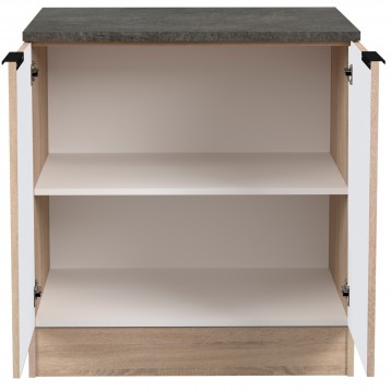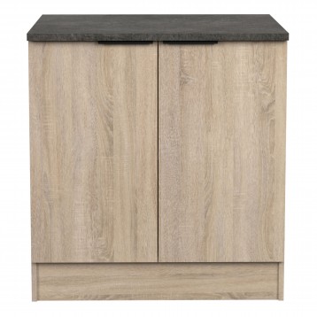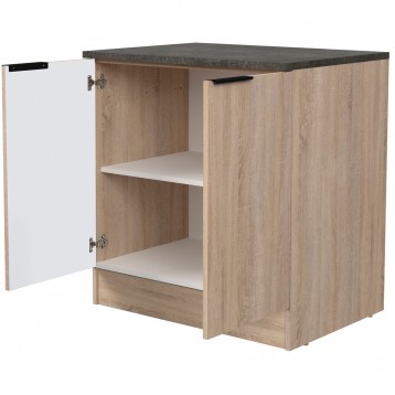 Atención personalizadaDescubre el módulo de cocina bajo Arko de 80 cm, una solución práctica y versátil para optimizar el espacio en tu cocina. Con un diseño enfocado en la utilidad, este mueble cuenta con 2 puertas y 1 estante interior, proporcionando un almacenamiento eficiente para tus utensilios de cocina y productos de limpieza. El mueble presenta un acabado en color roble áspero y negro, aportando un toque moderno al ambiente. Equipado con tiradores de aluminio lacado en negro, otorga un contraste visual atractivo y funcional. Este módulo fregadero está fabricado en melamina, un material conocido por su fácil mantenimiento y adaptabilidad a diferentes estilos de cocina. Es importante destacar que el fregadero no está incluido, y se requiere la preparación específica para realizar el orificio en la encimera. Se recomienda contactar a un profesional para asegurar la correcta instalación. El módulo de cocina Arko es ideal para quienes buscan muebles que combinen practicidad con una estética contemporánea. Añade este mueble a tu cocina para mejorar la organización.