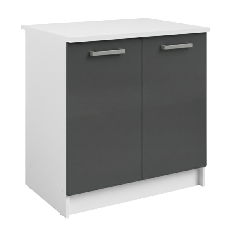 Módulo Cocina Bajo Vetro Fregadero 2 Puertas Gris Brillante y Blanco 80x60 cm