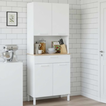Atención personalizadaEl mueble auxiliar de cocina alto Yuka está formado por 4 puertas, en cuyos interiores hay una balda para facilitar la distribución, 1 amplio cajón y un hueco perfecto para tu microondas. Está fabricado con melamina de alta calidad en color blanco artik (mate), con la repisa del hueco en color roble canadian y las patas de aluminio pintadas en blanco. Este mueble auxiliar alto solucionará tus problemas de almacenaje y podrás colocarlo en cualquier rincón en tu cocina.