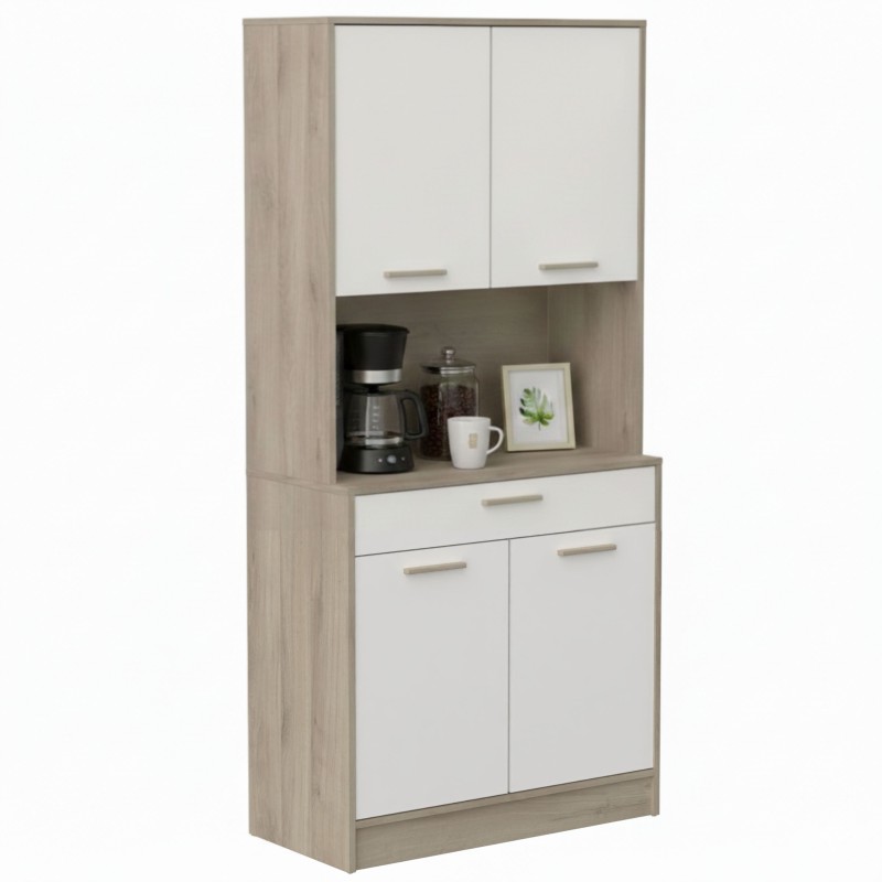 Atención personalizadaCompleta el almacenaje de tu cocina con este bonito mueble auxiliar Napoli. Un diseño perfecto que podrás adaptar a tu estancia y que resolverá todos tus problemas de espacio. Un mueble de cocina ideal para cualquier tipo y estilo de cocina, ya que gracias a sus cualidades, aportará sensación de luminosidad también a esta estancia de tu hogar. Un modelo fabricado en melamina resistente y de calidad, que combina el blanco mate con el roble kronberg. Fácil de limpiar, de mantener intacto y resistente a altas temperaturas. El mueble auxiliar de cocina Napoli posee un armario alto con dos puertas y balda interior regulable, un espacio intermedio abierto sobre un cajón y armario bajo con dos puertas y balda interior regulable de almacenaje.