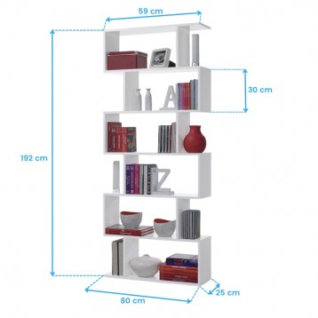 Atención personalizadaTe presentamos un fantástico pack de estanterías y escritorio Athena, color blanco brillo, fabricadas en melamina de alta calidad para mantener tu hogar siempre organizado. Este pack está compuesto por una estantería baja diseño zig-zag con diferentes estantes y compartimentos (Ref. 10148), una estantería alta, diseño zig-zag, con 5 baldas y 6 estantes para almacenamiento (Ref. 10150) y una fabulosa mesa de despacho u oficina con una cajonera en la parte derecha con dos cajones y un contenedor doble (Ref. 10152).