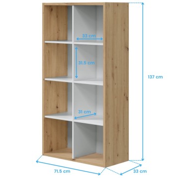 Estantería: Alto 137 cm, Ancho 71,5 cm, Profundo 33 cm