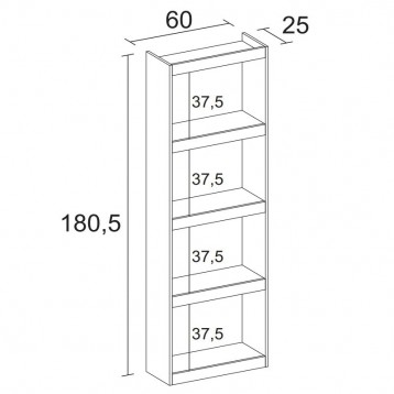 Librería: Alto 180.5 cm Ancho 60 cm Profundo 25 cm