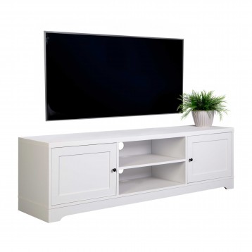 Atención personalizadaLa mesa de TV Ottavia, con un ancho de 160 cm y acabado en color blanco mate, es el mueble de salón que tu estancia necesita. Fabricado en melamina, este mueble combina durabilidad con un diseño minimalista que captura la esencia de la modernidad. Con 2 puertas abatibles laterales, ofrece un almacenaje elegante para tus dispositivos y accesorios, manteniendo el orden con estilo. En el centro cuenta con 2 huecos, cada uno con su propio pasacables, facilitando la organización de tus equipos electrónicos y eliminando el desorden visual de cables. Este mueble no solo soporta tu TV, sino que eleva el conjunto de tu decoración, proyectando una atmósfera de serenidad en tu hogar. Conviértelo en el centro de tu entretenimiento, donde la funcionalidad se encuentra con el diseño para crear un espacio acogedor y ordenado. ¡Que bien te quedará!