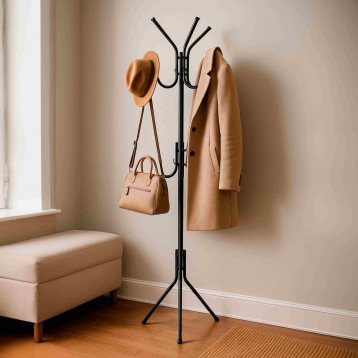 Atención personalizadaTe presentamos la solución para el recibidor de tu hogar con nuestro perchero de pie en color negro. Perfecto para adaptarse a cualquier rincón, este práctico accesorio es la respuesta a tus necesidades de organización diaria. Equipado con 6 colgadores, este perchero proporciona un amplio espacio para colgar abrigos, chaquetas, bufandas y accesorios, manteniéndolos siempre al alcance de tu mano. Su diseño en color negro aporta un toque moderno y discreto que se integra armoniosamente en cualquier estilo decorativo, ya sea en el recibidor, el dormitorio o la oficina. Este perchero se convierte en una pieza clave para mantener el orden y aprovechar al máximo el espacio disponible en tu hogar. Fabricado en metal, resulta una alternativa práctica para quienes buscan soluciones económicas. Con este perchero de pie, organizar tus prendas diarias nunca fue tan sencillo. Añádelo a tu carrito.