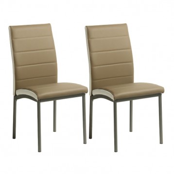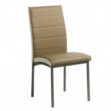 Atención personalizada¿Estás de reforma en casa? ¡Empieza por tu salón y consigue sillas de salón como estas! Este modelo Meli, fabricada con estructura de metal resistente y revestida con tela de polipiel en color camel, posee un diseño moderno y actual. Las costuras del respaldo y del asiento, junto con la franja en color blanco que bordea todo el lateral de la silla, hacen de ella un mueble diferente, atrevido y con personalidad ¡La silla Meli aportará originalidad, carácter y estilo moderno a tu hogar! Deja de darle más vueltas, añade a tu carrito el pack de 2, 4 o 6, que mejor te vaya, y luce un salón completo y a la última ¿Cuál es el conjunto de muebles que conquistará tu corazón? Déjate sorprender y disfruta de tu día a día de la mejor manera ¡No habrá encontrarás nada igual o superior que ellas! Créenos.