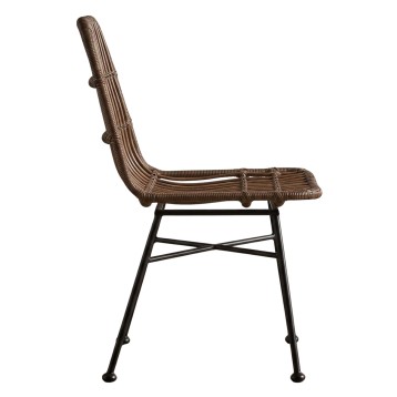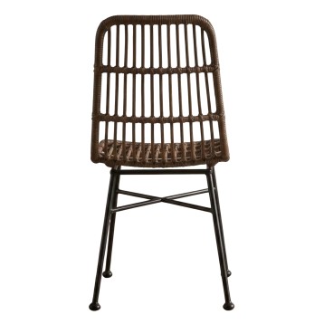 El asiento y el respaldo de la silla están fabricados en rattán marrón y sus patas son de metal negro, cuentan con una estructura actual y vanguardista. La mejor combinación para llevarse el protagonismo en tu comedor. ¡Solo hay que ver el resultado!