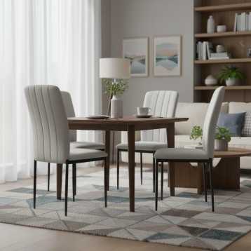 Atención personalizadaDescubre la silla de comedor Trenton, un mueble que combina elegancia y comodidad en tu salón. Con su diseño contemporáneo y una paleta de color gris ceniza, esta silla se presenta como la elección perfecta para quienes buscan añadir un toque moderno a sus comidas. Las patas de metal en color negro no solo aportan una base sólida, sino que también ofrecen un contraste visual impactante con el asiento y el respaldo tapizados en tela de color gris ceniza. Esta combinación de materiales no solo garantiza comodidad durante largas horas de conversaciones y cenas, sino que también asegura una buena estabilidad y fácil mantenimiento. Ideal para cualquier configuración de comedor, una silla de salón que invita a sentarse y disfrutar de momentos memorables, mezclando a la perfección funcionalidad y diseño. ¡Destaca tu hogar!