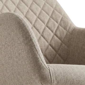 Atención personalizadaDale un toque contemporáneo y cómodo a tu espacio con la silla de comedor Rombo tapizada en tela de color beige. Este sillón es ideal para quienes buscan potenciar su comedor u oficina con muebles que combinen estilo y confort. La tapicería de tela no solo aporta un aspecto moderno con sus tonos beige definidos, sino que también es fácil de mantener, lo que la convierte en una elección práctica para el día a día. La estructura está basada en patas metálicas diseñadas para ofrecer estabilidad. Estas patas cuentan con un recubrimiento de pintura epoxy en color negro que no solo resalta su modernidad, sino que también agrega un toque visualmente atractivo. Su diseño con reposabrazos proporciona un soporte adicional al usuario, haciendo que sea adecuada tanto para momentos de descanso como para reuniones prolijas. Ideal para ambientes que buscan modernidad. Crea el lugar perfecto donde compartir momentos inolvidables.